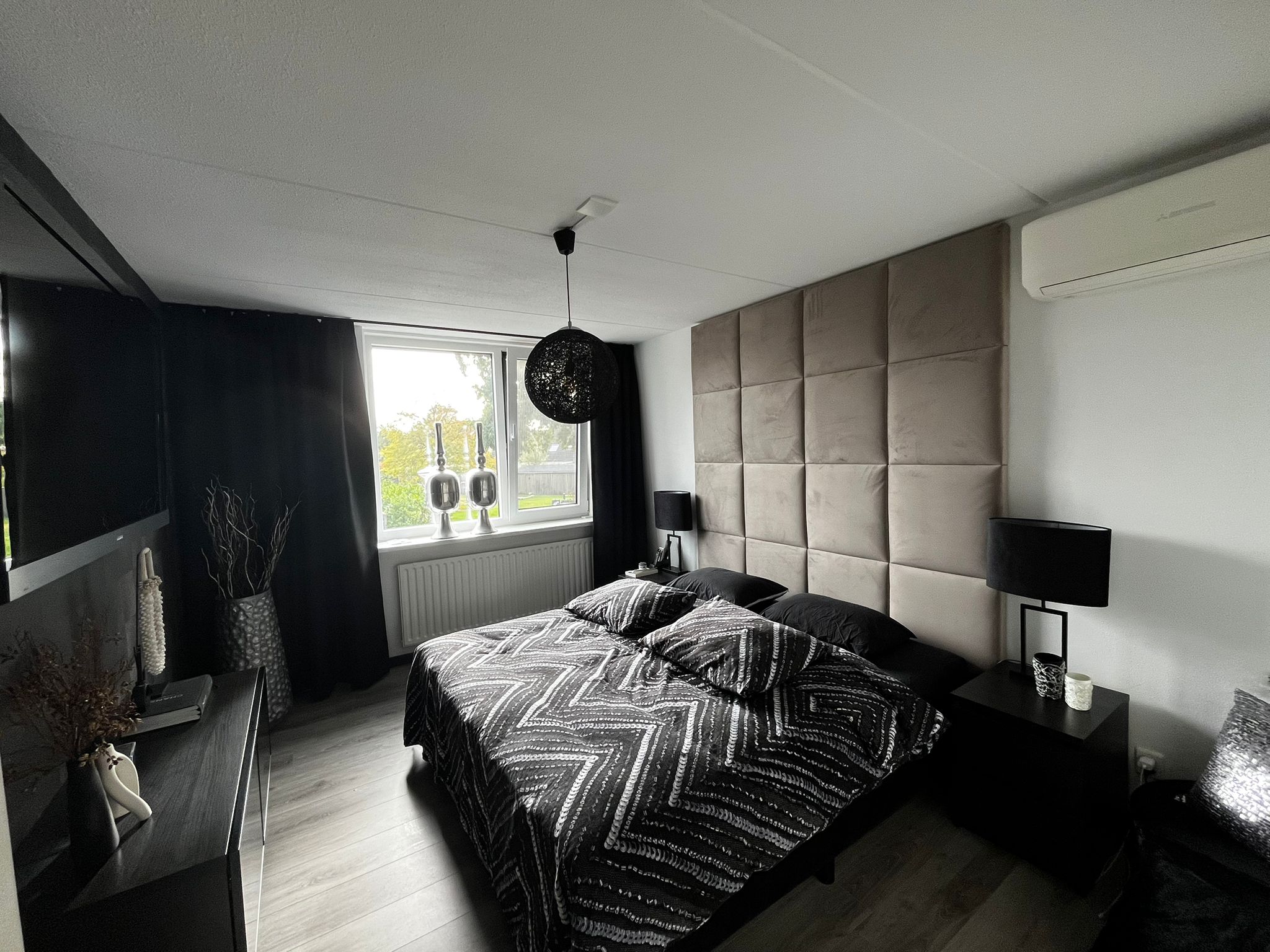 Hoofdbord bed is verdeeld in vakken of panelen. headboard. Bedhoofd. hoofdeinde bed. Voorzet wand. VT wonen. Gestoffeerd. slijtvaste stof. muurbeschermer. wandmontage. Boxspring. bed. eenpersoons. op maat gemaakt.